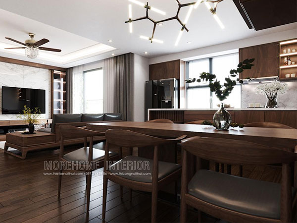 Thi công bàn ghế ăn gỗ óc chó StarLake Tây Hồ Tây Hà Nội